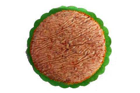 Deze charcuterieworst op basis van varkensvlees en spek is herkenbaar aan zijn rode steriele darm waarin het gekookte vlees opgevuld wordt.